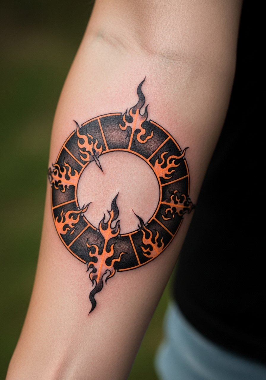 12. Flame Alchemy Circle on Forearm Sleeve Start