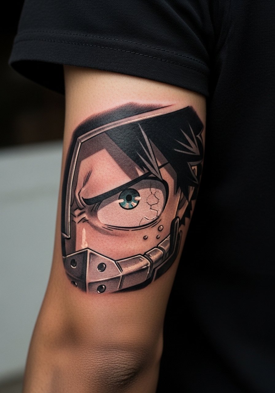 There is real visual payoff when you crop high-energy action and let motion lines breathe. Biceps provide muscle canvas that holds spirals and bursts. A 5×7 inch panel runs one to two sessions depending on color accents. Tell your artist you want the spirals to remain open and readable, and request heavier outer lines with light internal hatching. Mistake to avoid is dense dot work inside the Rasengan that clogs into a blob after healing. On dark skin prioritize strong black and limited color accents so contrast stays. Expect some stretch if your muscle size changes, so plan placement off the peak muscle if you gain weight.