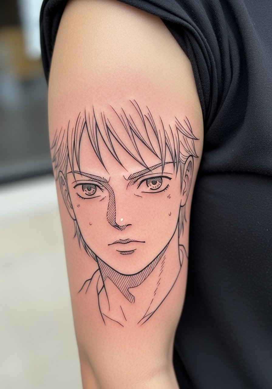 I picked this because clean portraits are the backbone of manga tattoos. When artists nail thin, even lines and tight expressions, the piece reads like a panel rather than a doodle. The upper arm gives enough flat canvas for facial detail without the curve problems of ribs. Expect moderate discomfort—skin here is forgiving. Healing is straightforward: 2–3 weeks surface heal, full settle at 2–3 months. Fine lines require careful aftercare; I’ve noticed they blur faster if you pick or let scabs persist. Ask your artist about slightly thicker primary lines around the face to preserve contrast as it heals. Avoid over-saturating tiny details; clarity now beats hyper-detail that mashes later.