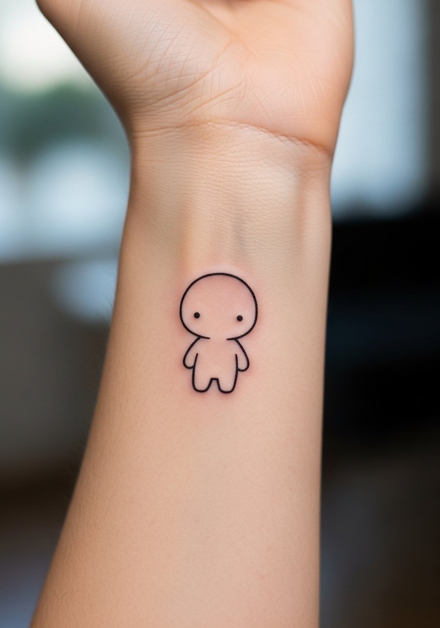 2. Clean Chibi Wrist Tattoo in Minimalist Linework