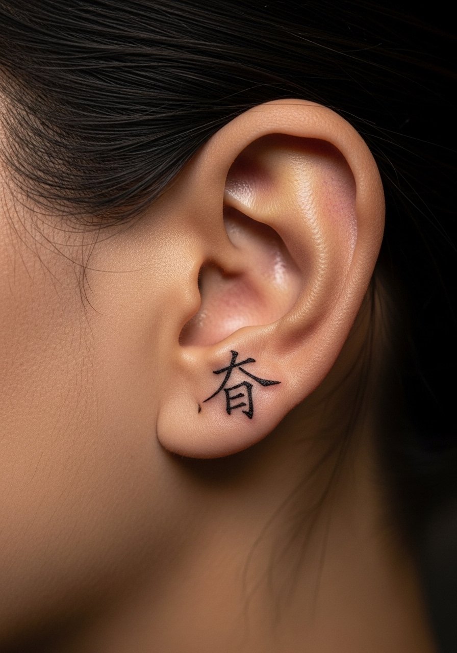 Small kanji can be powerful when executed cleanly. Behind the ear is discreet but sensitive; pain is sharp and brief. From what I’ve seen, solid, confident strokes are essential—a shaky line ruins legibility. Discuss character meaning with your artist and double-check translation. Tiny kanji should be slightly larger than you think to prevent merging. Aftercare must avoid friction from hair and collars during the first two weeks.