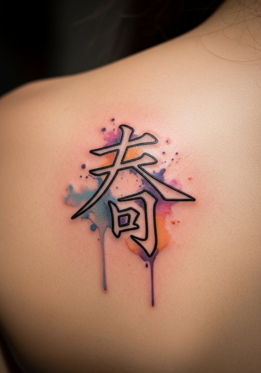 Watercolor effects can add emotion to a manga character. Shoulder blade sits flat and shows off color washes well. Expect easier pain and straightforward healing. I’ve noticed watercolor needs strong line anchors; otherwise, colors look like smudges when healed. Ask your artist to plan color saturation and to leave breathing room around linework to prevent colors invading fine lines. This style needs touch-ups more often than pure blackwork.