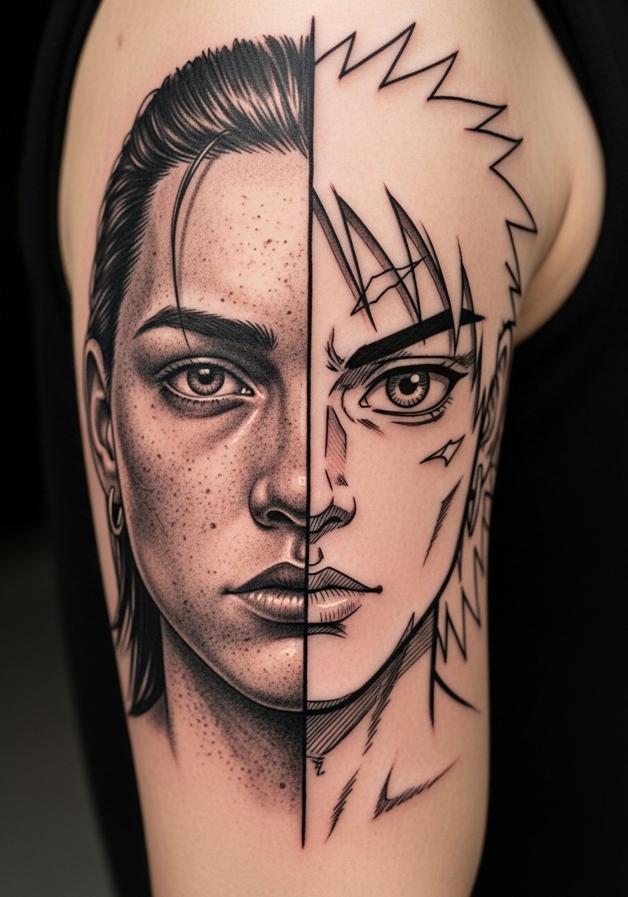 12. Split-Face Manga/Realism Upper Arm Hybrid