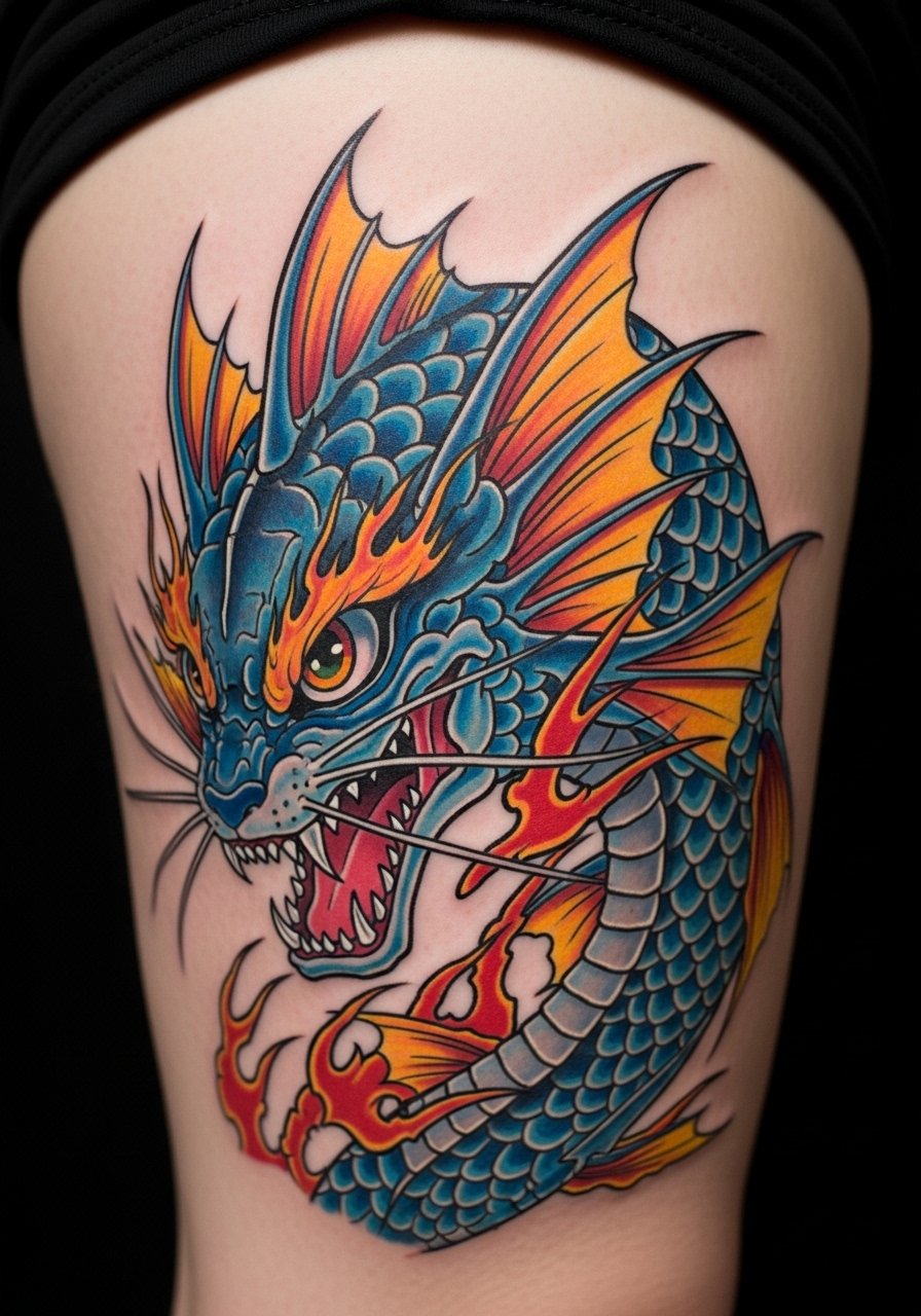 I saw a creature piece that kept tiny scales readable because the thigh gives canvas space. Pain is low to moderate on the thigh. Sessions for a larger creature can be three hours plus. Tell your artist to keep scale patterns larger and avoid micro textures. A common mistake is demanding micro scales. They become visual noise when healed. If you want the creature on the calf, expect slightly faster fading in areas with higher sun exposure.