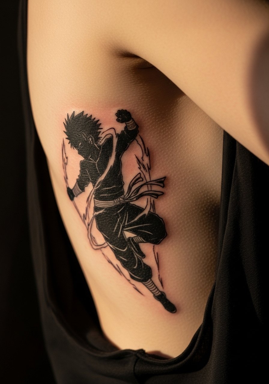 I love using negative space for manga silhouettes, but ribs are one of the most painful spots. Pain is high. Sessions are one to two hours for medium pieces. Tell your artist you want solid blacks framing the silhouette and to avoid tiny inner details. The common mistake is expecting thin internal lines to remain crisp across the rib. Negative space reads well even after softening, because the silhouette holds shape. Protect it from sun and heavy friction to keep the blacks from turning patchy.