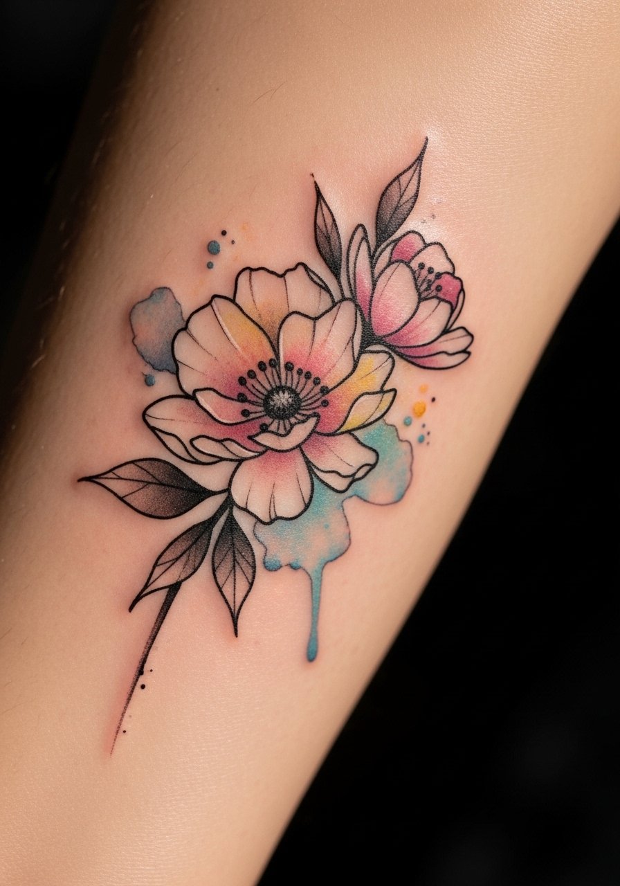 Watercolor florals look like a brushstroke across skin. They feel airy and emotive. In my experience, watercolor requires careful saturation to avoid fading into patchiness. Forearm placement suits the painterly flow and photographs well. Pain is moderate and the session length is short to mid-range. The common advice I’ve heard: mix watercolor with subtle line anchors so the design keeps shape as colors shift. If color longevity matters, ask artists how they plan to balance pigment load—many neo-traditional artists now blend watercolor effects with sturdier outlines.