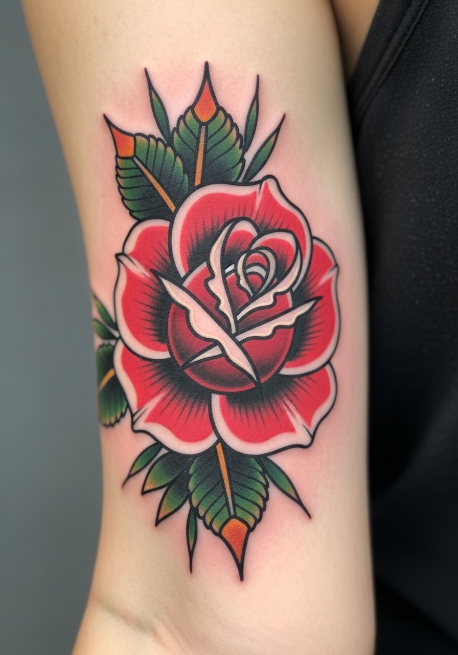 Neo-traditional roses are classic for a reason. They use bold lines and layered color, so they age with character. I’ve seen these remain readable even as color softens. Biceps are a forgiving placement—less painful and easy to cover. Ask for visible healed work in similar color palettes; saturation choices determine long-term brightness. A frequent misstep is overcrowding the composition—neo-traditional reads best with clear shapes and breathing room. Artists like Valerie Vargas do this well; mention the style you want during consults to get the right color balance.