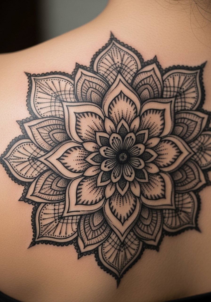 Floral mandalas combine botanical elements with symmetry for a meditative feel. The upper back gives a flat canvas, so artists can pack in detail without distortion. Expect longer sessions and disciplined aftercare; the area heals well but can be sensitive when sleeping. From what I’ve seen, mandalas age gracefully if dotwork and line spacing is balanced—too tight and it fills in. Avoid copying overly dense designs from low-res images. Ask to see healed mandala work, especially on skin tones like yours, to set expectations.