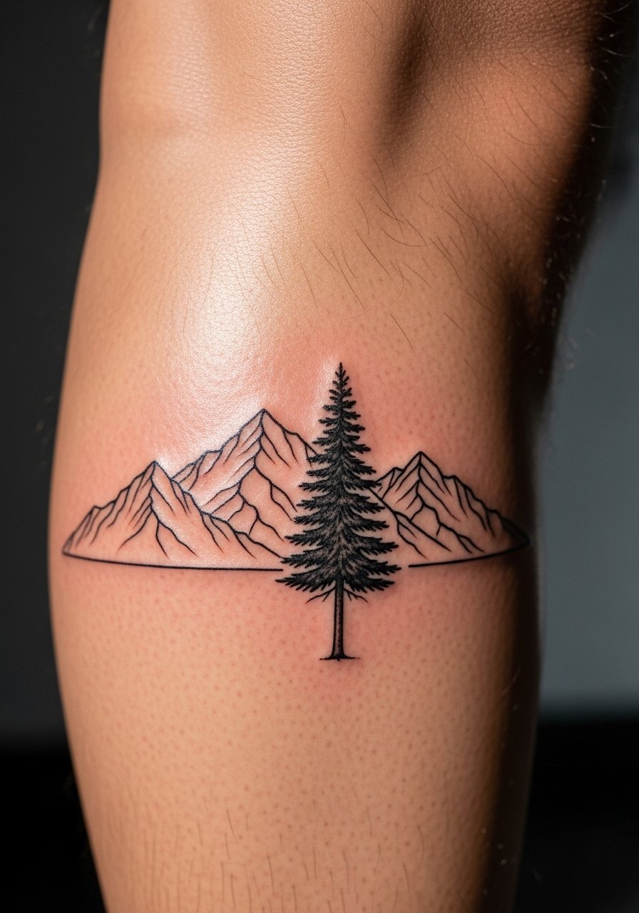 Calf landscapes read like pocket-sized panoramas. A vertical tree with mountains gives a sense of depth and calm. Calf skin tolerates longer sessions and the design sits well when you stand or move. In my experience, simple line landscapes age better than micro-detailed panoramas because the leg sees friction from clothing. Avoid cramming tiny textures—let the silhouette breathe. Many artists recommend testing a temporary placement to confirm scale, especially if you plan sleeves or other leg work.