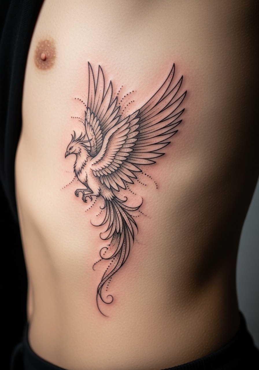Phoenix tattoos on the ribs pack emotional punch. The ribcage is a high-pain area, so many people stagger sessions. I’ve seen phoenix designs become profound reminders of resilience. Fine-line phoenix work needs an experienced hand; lines too close together can blur as the skin heals. Ask your artist about session pacing and aftercare for the torso. A common misstep is bringing in heavy color too early—let the outline and structure settle first. If you want symbolism, mention what rebirth looks like to you so the artist can personalize the bird.