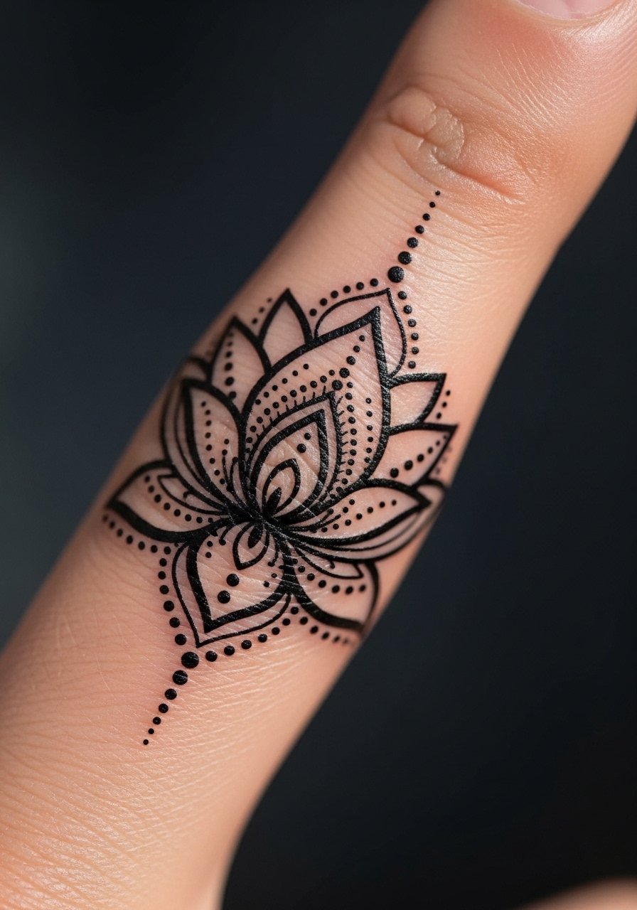 Lotus finger tattoos are intimate and meaningful. Fingers show anatomy clearly—bone and movement make healing tricky. In my experience, simple strong lines hold better than lacey detail. Pain is sharp but short. Many artists recommend touch-ups down the line; it's common. Ask about line thickness: slightly bolder lines tend to last longer on fingers. If you want anatomy-highlighting finger ornaments, bring reference images so the artist can adapt scale to your phalange length.