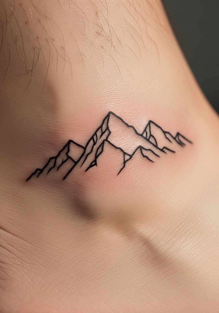 Minimalist mountains read clean and calm. I chose ankle placement because the vertical line mirrors the leg. These are low-commitment but visible when you want them to be. The ankle bone stings more; expect quick sessions. The most common mistake: lines too thin for this area—ask for modest line weight to help longevity. If you want the best forearm tattoo placement instead, consider shifting the design to a forearm or wrist for easier display.