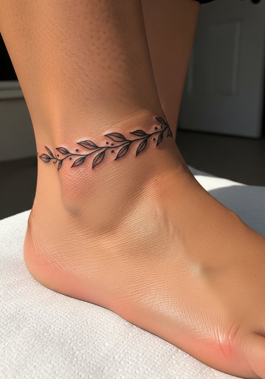 Anklet bands read like jewelry. Using negative space keeps the design airy and wearable. Because ankles see rubbing from socks and shoes, pick slightly stronger lines. I’ve told friends to expect minor touch-ups if they want long-term crispness. Pain is localized but short. Avoid overcomplicating the band—clarity of motif is what makes anklets look intentional rather than cluttered.