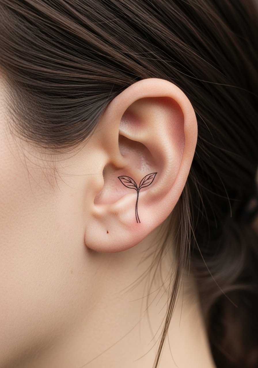 Behind-ear seedling tattoos are discreet and symbolic. The area is sensitive but sessions are short. I picked this style for people who want a private reminder of growth. A common slip-up is over-detailing a very small area—keep it simple. Healing needs caution around hair and shampoo. Ask an artist about placement relative to hairline to keep visibility balanced.