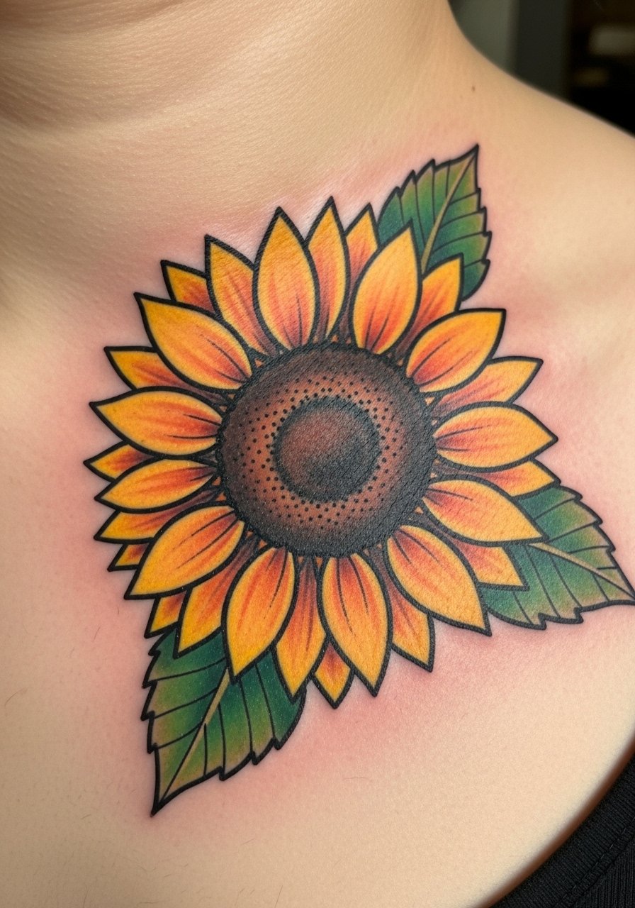 Collarbones show off floral accents beautifully. Sunflowers read bright and steady. The bone area is stingier, so expect higher pain but short sessions. I've found that neo-traditional flower work holds its silhouette as it ages if lines are confident. Avoid overcrowding—let the blossom breathe near the clavicle.