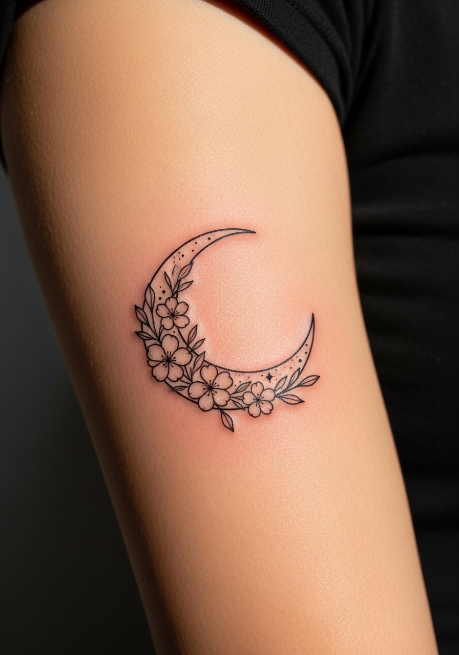 Moon-and-flower pairings feel ritualistic and grounding. Inner arm placement reads intimate and photographs well. I’ve noticed that fine-line moons work best when paired with small floral anchors to preserve shape over time. Ask artists about line spacing to ensure the moon doesn’t blur into petals after healing.