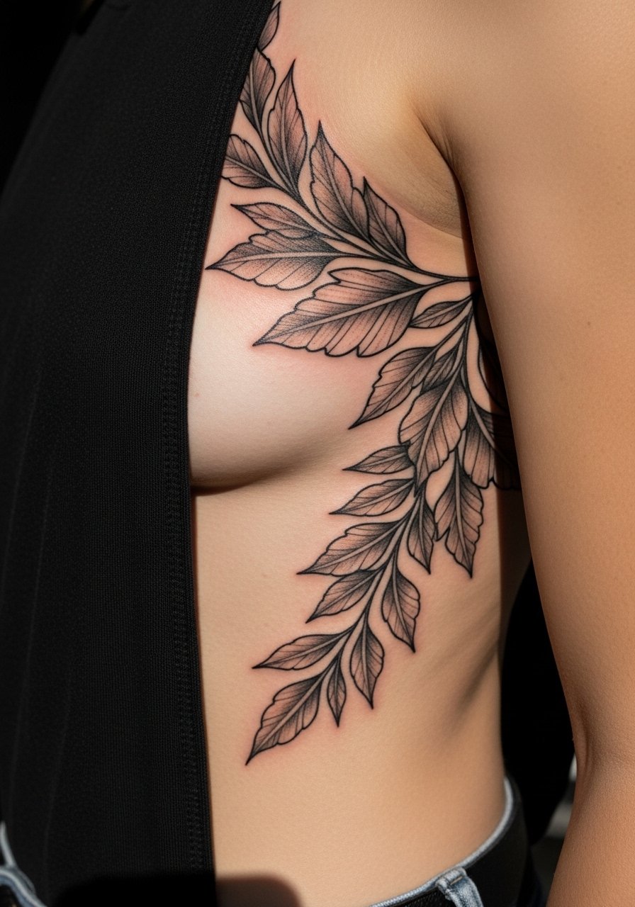 Ribcage wraps feel intimate and sculptural. Leaves that flow into the arm create a sense of being wrapped by nature. Pain is notable but many collectors say the payoff is worth it. To prevent blurring, keep leaf veins purposeful and not overly filigreed. Ask artists about session spacing to manage discomfort.