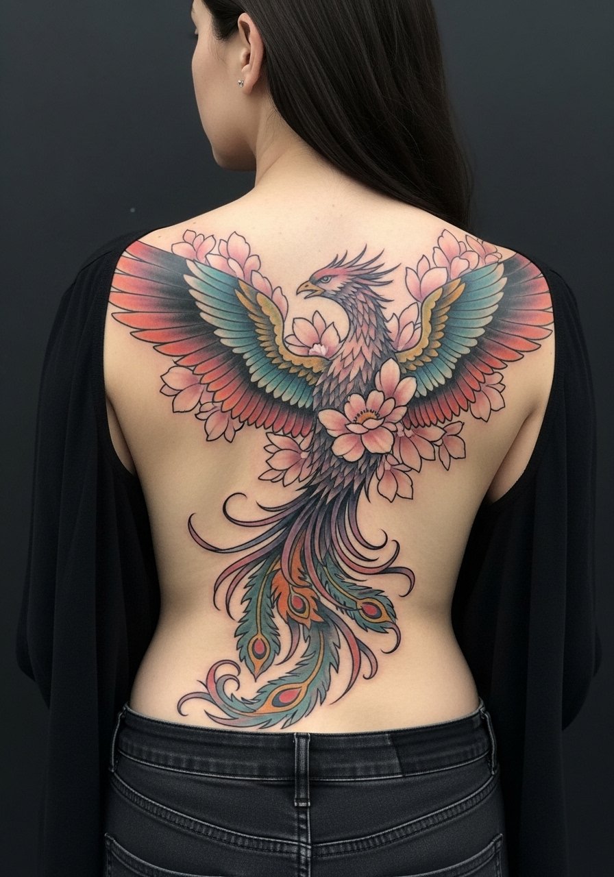 The phoenix is a classic symbol for rebirth. Pairing it with florals softens the motif and ties it to nature. Large placements like back into ribs let artists play with scale. Pain is high across ribs, so plan sessions. I’ve seen phoenix pieces become personal anchors when artists incorporate custom flora tied to personal stories.