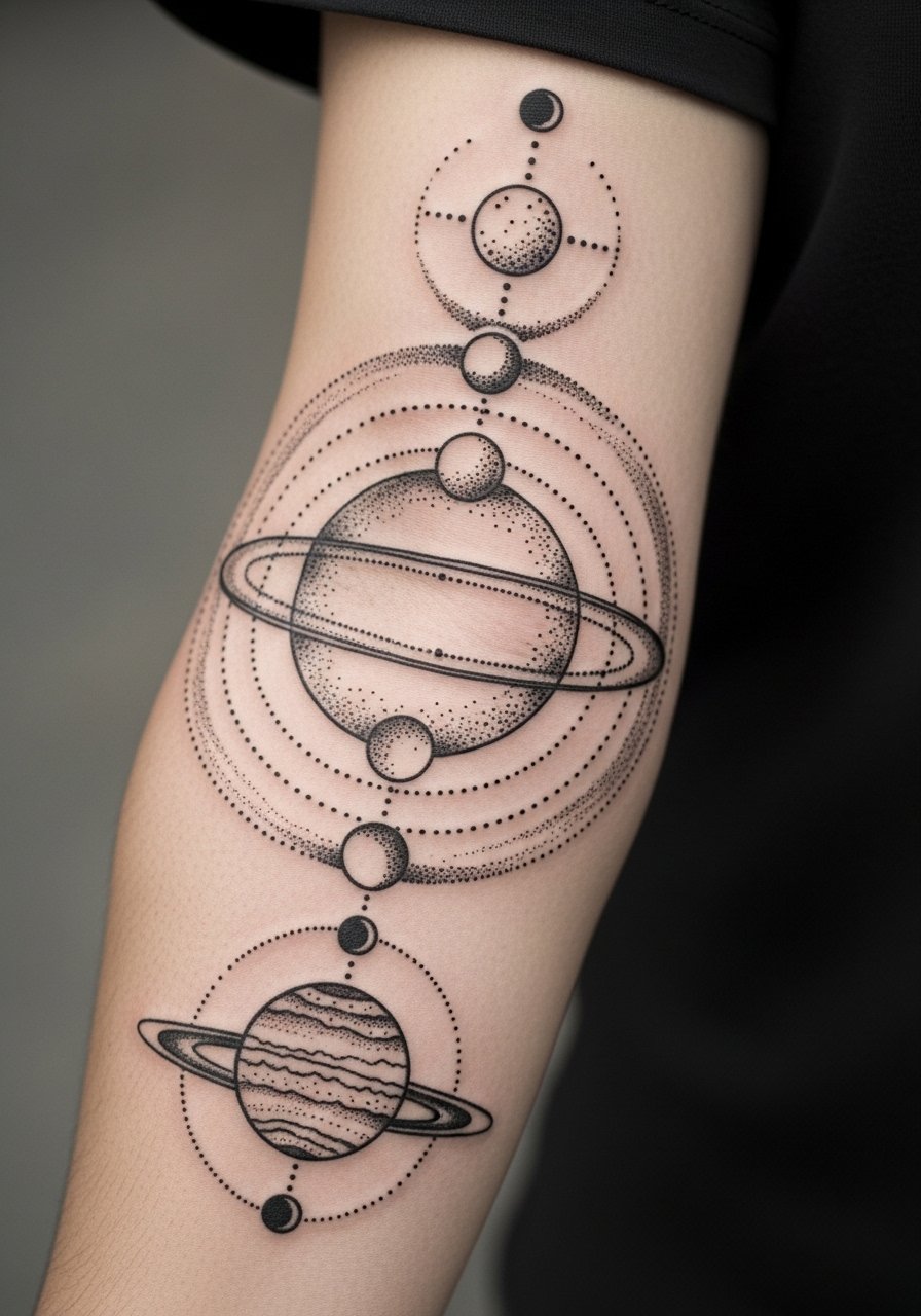 1. Geometric Planet Alignment Sleeve on Outer Forearm