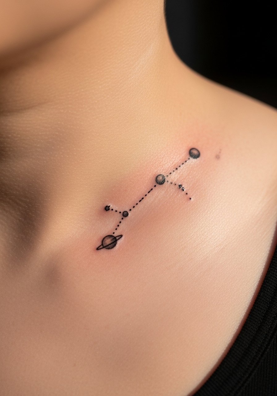 A micro-realism constellation across the collarbone reads delicate and personal. Collarbone pieces are visible and flattering but can be sensitive during the session due to bone proximity. Healed micro-shading can look soft and lovely when the artist balances line weight. Avoid over-detailing—micro pieces need clarity at small scale. I suggest asking for slight boldening of key outlines and keeping background elements minimal. From what I’ve seen, artists who work frequently on collarbones will show healed shots that reveal how lines settle—ask to see those before booking.