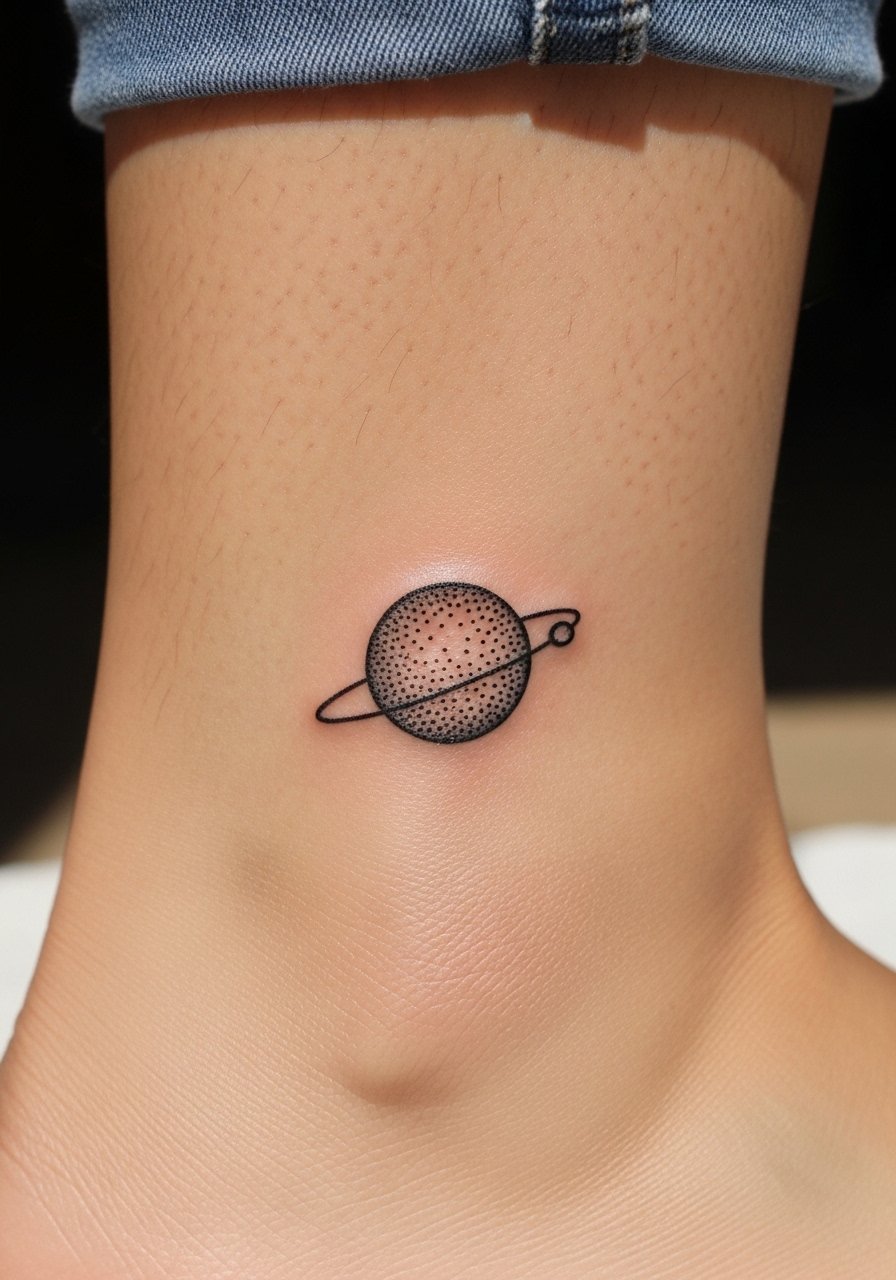 15. Handpoke Minimal Planet on Ankle (Handpoke/Indie Aesthetic)