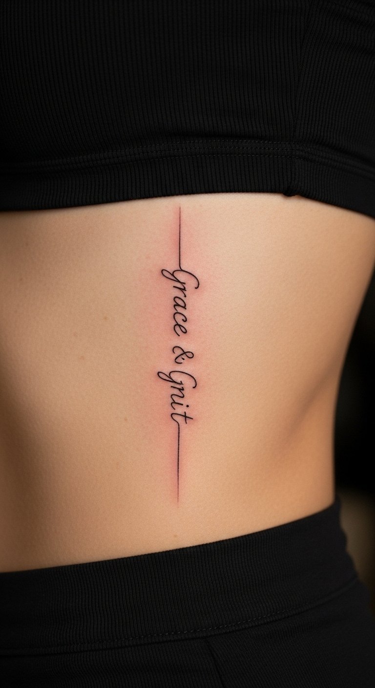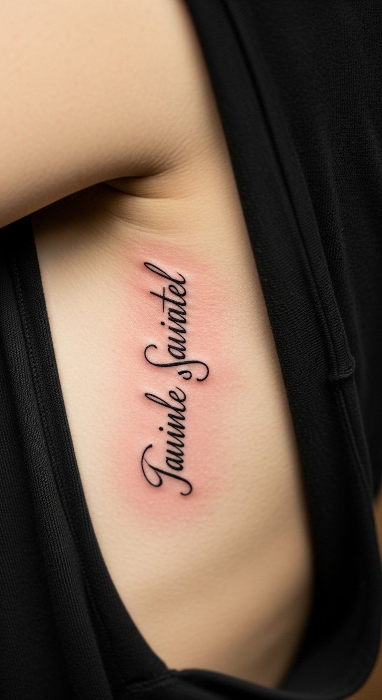 A vertical line of script uses the rib’s natural length—very intimate when tucked under a top. Modern calligraphy looks airy but needs a steady hand: thin flourishes can soften with time, so favor slightly bolder single-line scripts. Pain spikes where ribs are close to the skin, so short breaks help. Bring your exact lettering sample and ask the artist to stencil it on your body to see how it flows with breathing.