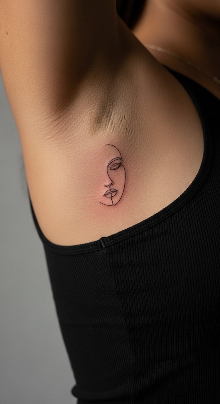 Single-line portraits make an intimate statement without shouting. The rib’s curve can exaggerate the face in a flattering way—artists often position the line to follow the obliques. Because the design is so open, any shakiness is visible; choose an artist confident with continuous-line work.