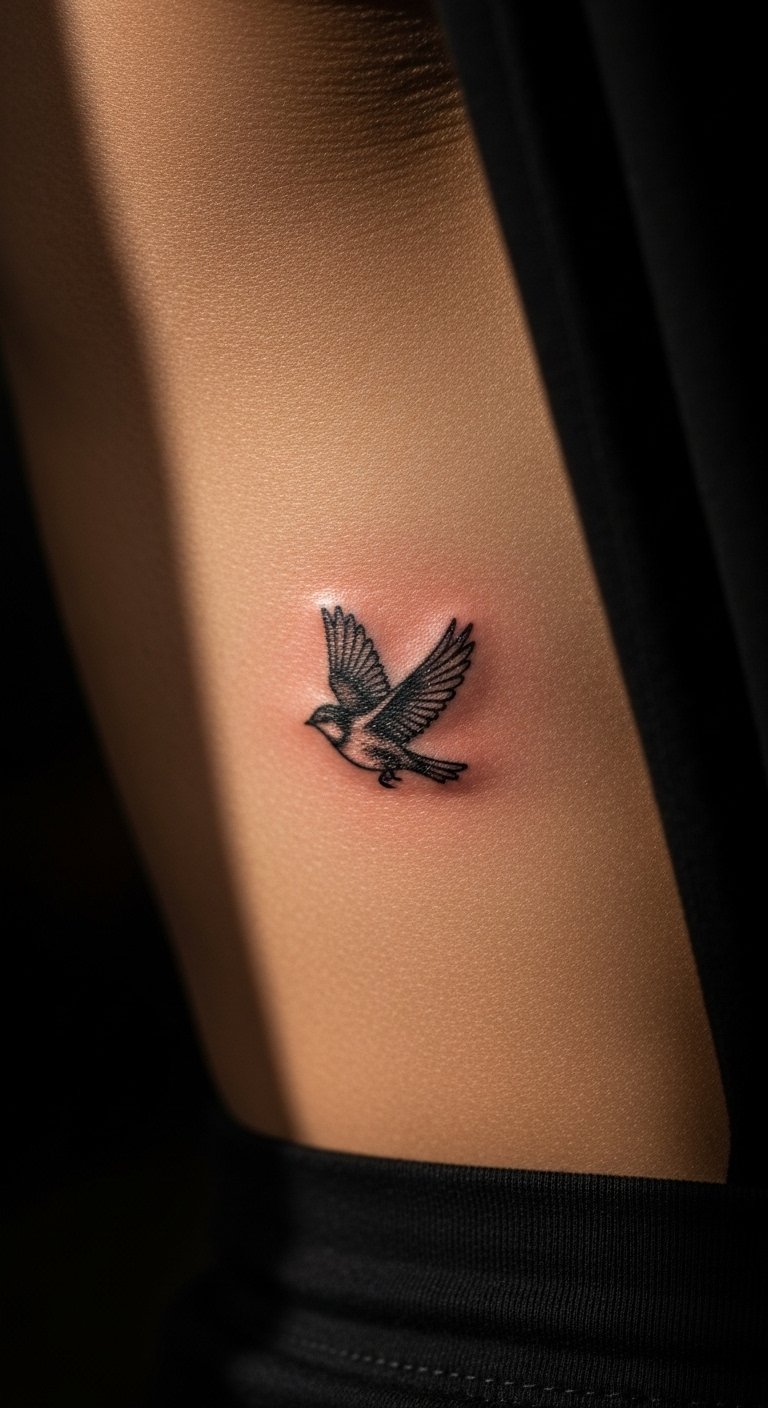 Tiny birds look dynamic on the rib. Because the design follows muscle and breathing, choose a pose that curves with the body. Color adds vulnerability to the piece—if you go for pastels, know they fade faster and need touch-ups. I recommend healed photos from an artist before committing to color.