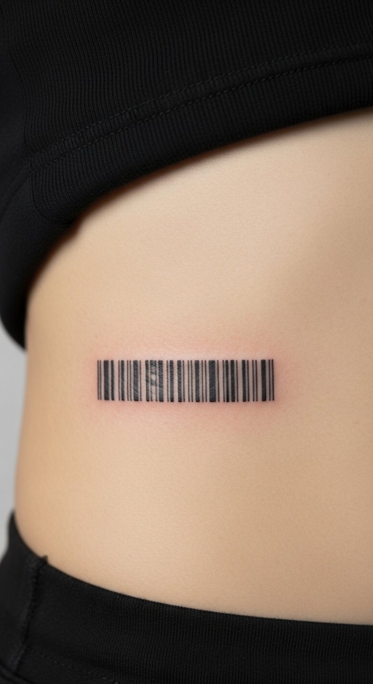 Morse code or barcode lines look like a textured stripe but carry a private meaning. Because lines are repetitive and close, spacing precision matters—tiny errors read clearly. This design benefits from slightly more separation between elements to age cleanly.