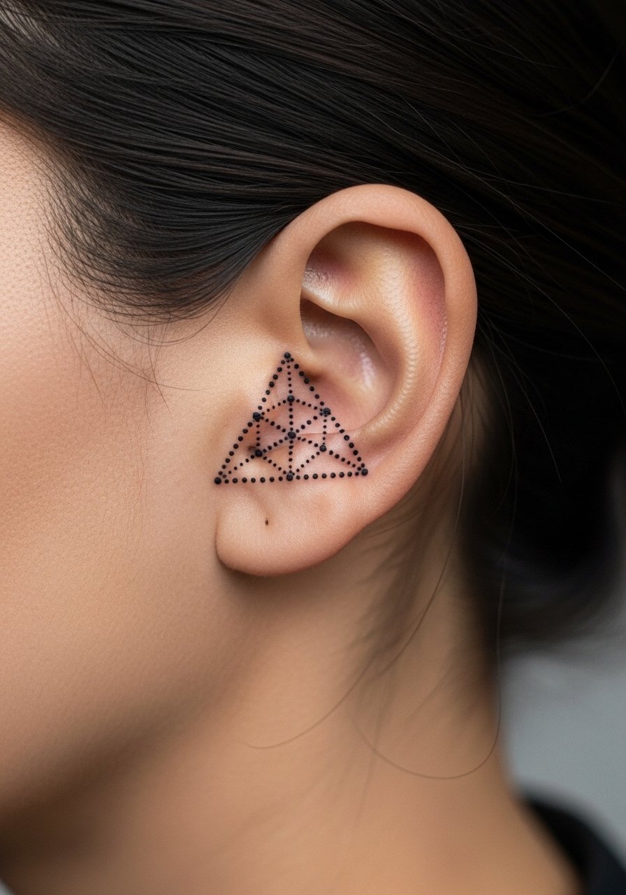 15. Minimalist Dotwork Dot Triangle Behind Ear