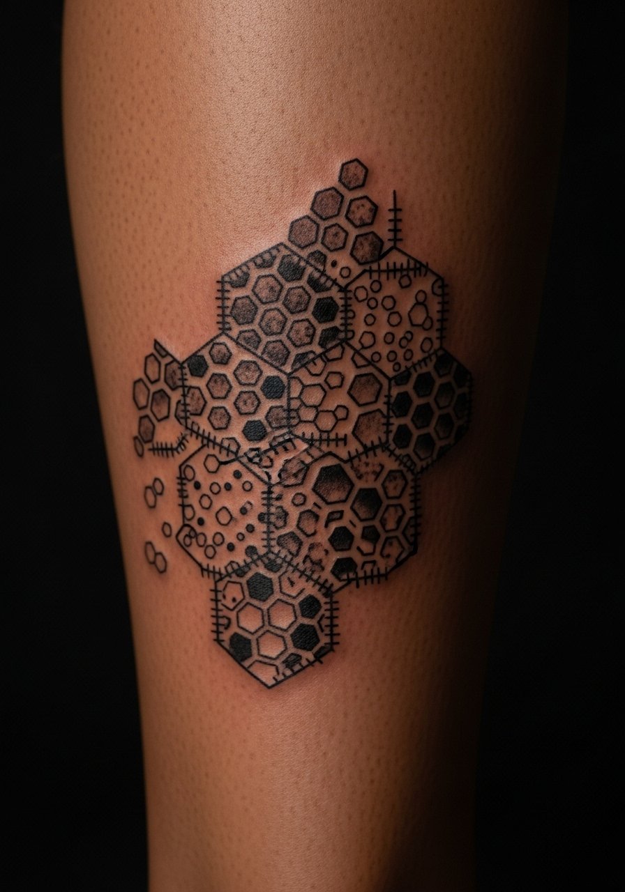 A modular honeycomb allows you to expand over time—one of the designer-friendly approaches I recommend. The calf is forgiving and less prone to distortion. I've seen people use this to mask old ink by layering new cells. Keep some cells bold and some open to maintain visual rhythm. Ask your artist how new patches will connect to older work to avoid awkward seams.