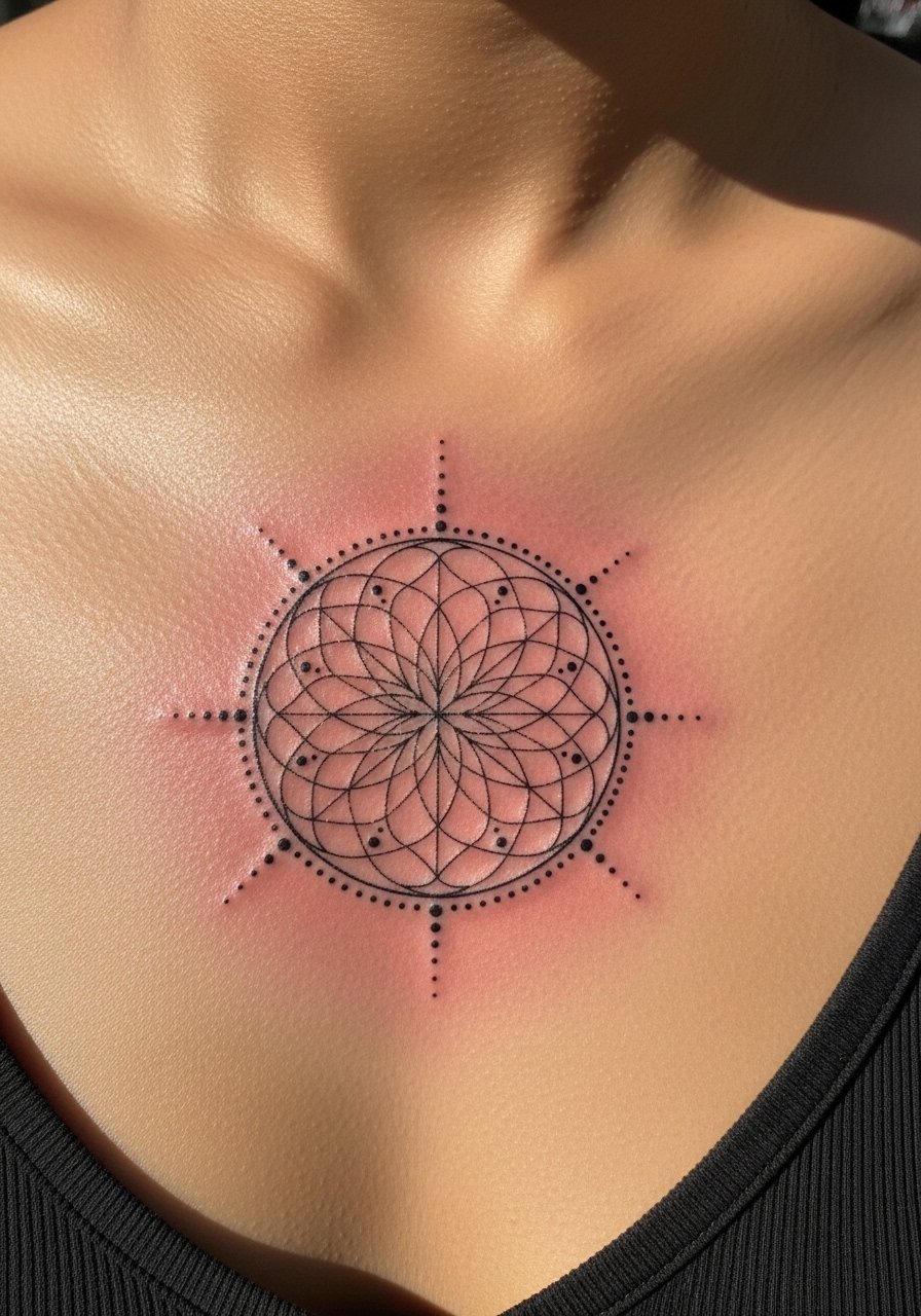 Best For: First sacred geometry tattoo, symbolic chest piece