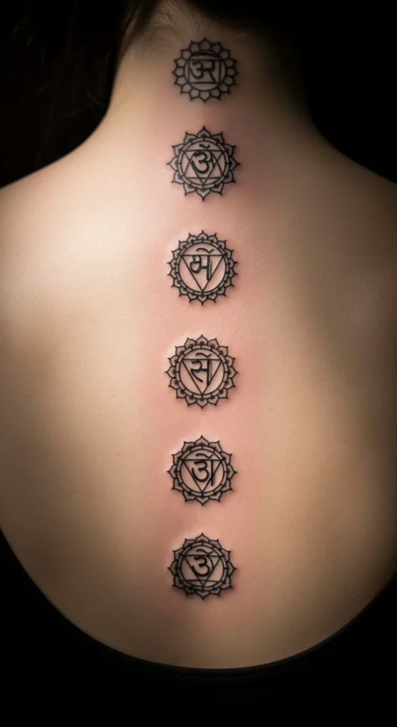 Some people prefer a minimal set of all seven chakras. You can line them up vertically or arrange them in a gentle arc on the ribcage. The shapes are simple, so they’re budget-friendly. Choose thin outlines and skip shading. Ask your artist to print them at the exact sizes you want so you can test placement. The simple style makes this design one of the easiest to customize.