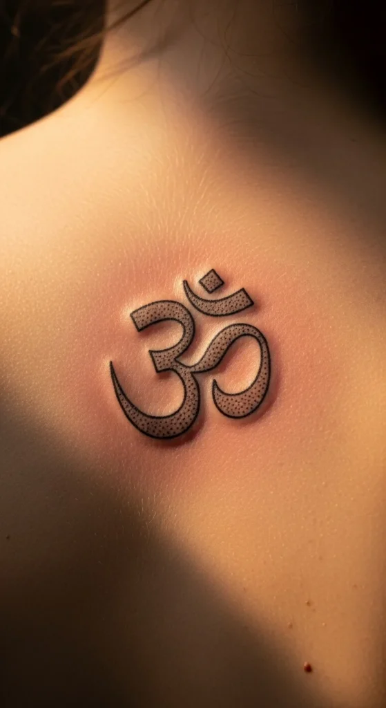 The Om symbol is still the most requested Sanskrit tattoo worldwide. It’s simple, balanced, and fits almost any placement. Many people choose it because it feels grounding. If you prefer small designs, place it on the wrist or behind the ear. A local artist can draw it in a clean Devanagari style without extra cost. You can also try a single-needle outline for a softer look. Keep the size small to avoid blowouts and ask your artist for a stencil test before committing.