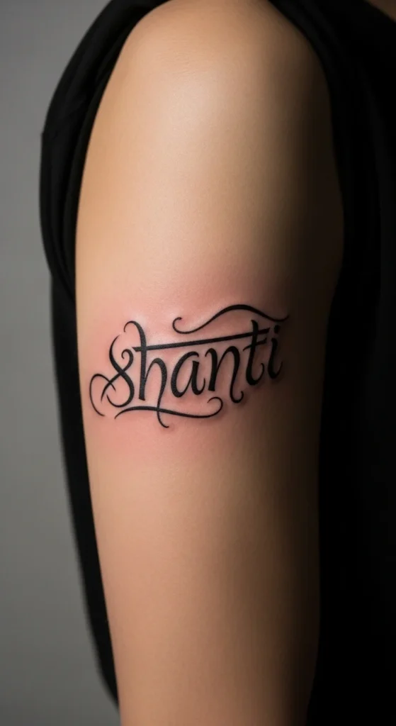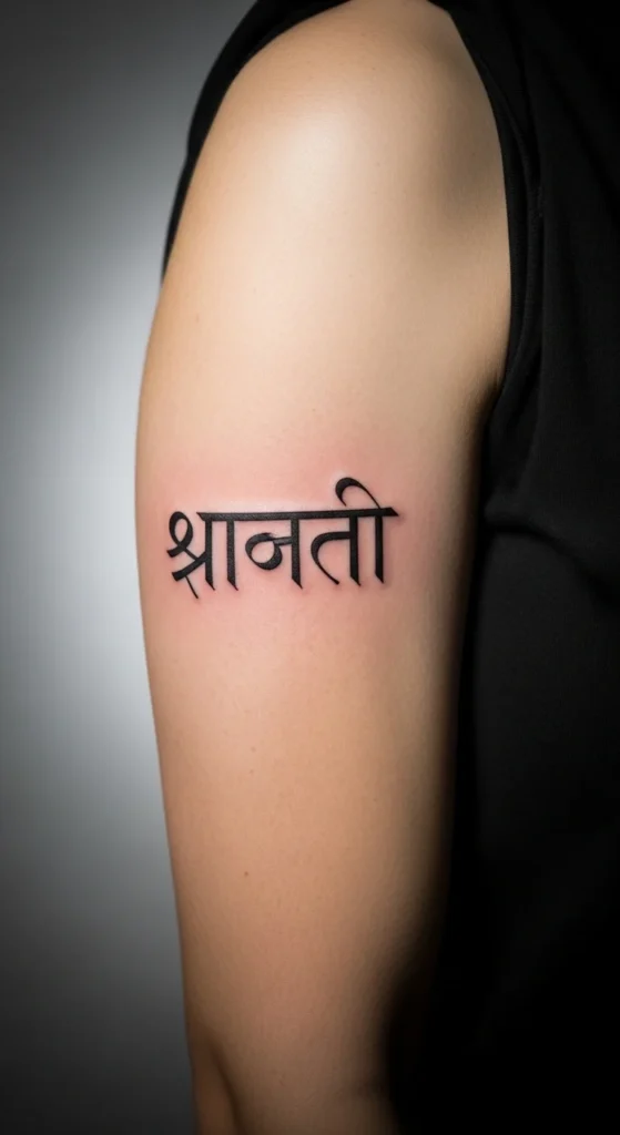 Shanti, often repeated three times for calmness, is popular for people seeking balance. The word looks elegant in a slender Devanagari font. You can place it horizontally across the arm or stack the characters vertically near the ankle. If you want a minimal budget design, skip decorative elements and stick with a single line weight. Ask your artist to show multiple font styles so you can choose one that matches your personality.