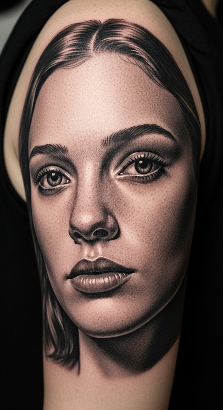 Micro-Realism Portrait Sleeve on Upper Arm