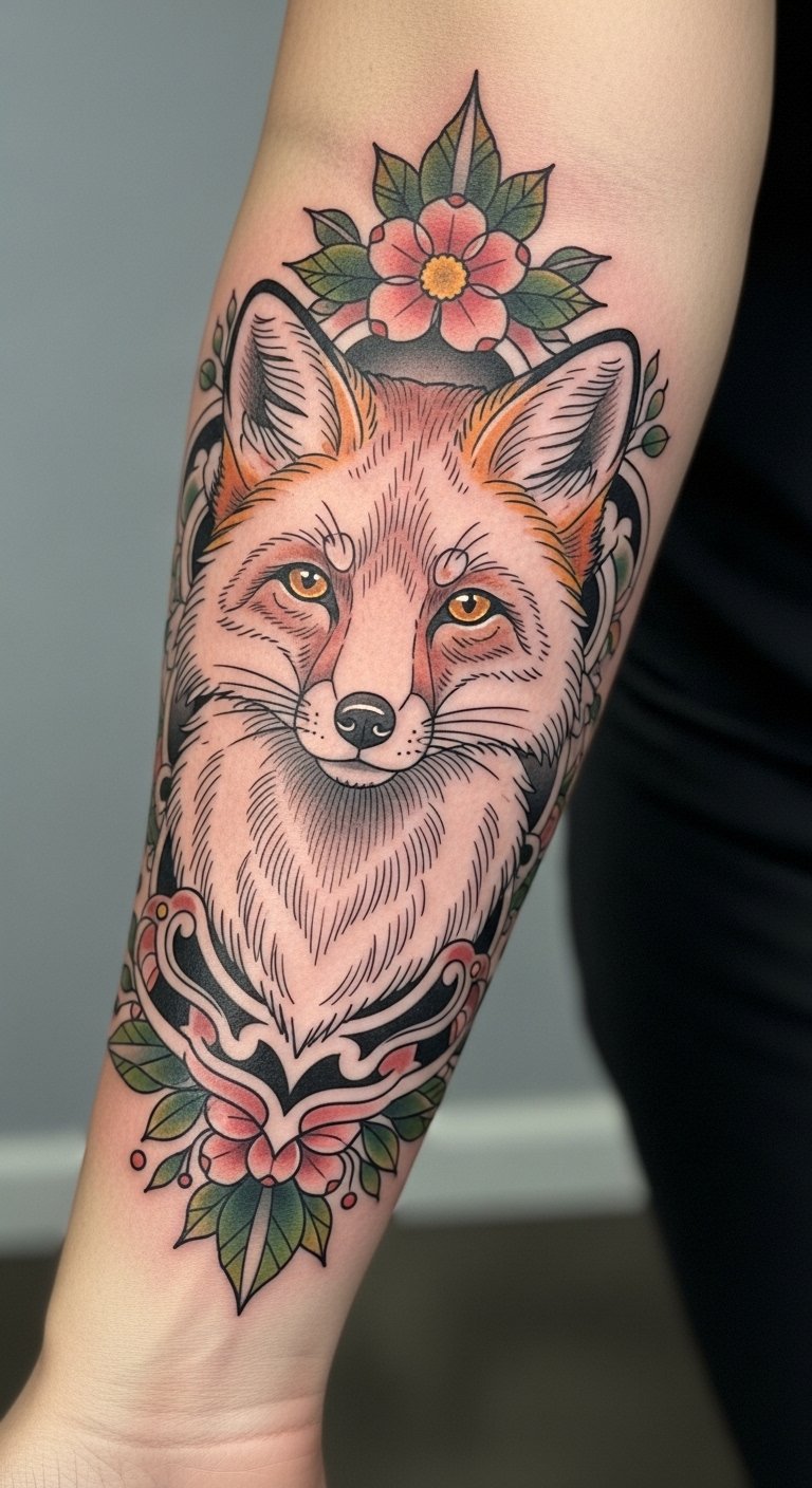 I love neo-traditional animal portraits—they combine realism with stylized framing. The upper arm allows the portrait to sit prominently with floral or geometric frames flowing down the arm. Pain is moderate. These pieces age well when outlines are decisive and color fills are even. A mistake is trying to force a hyper-realism portrait into a neo-traditional style—be clear about the mix. Ask your artist how they’ll balance realistic shading with bold outline work, and request healed photos showing edge clarity.