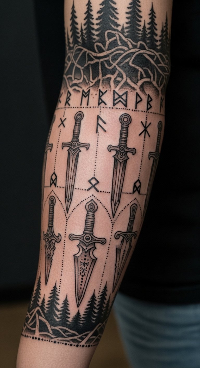 I’ve seen many clients bring in symbolic languages—runes, sigils, and ritual items—that form a personal code. Linework and dotwork suit these designs because they can be scaled and woven together without heavy color. Inner forearm placement helps keep the symbols private or visible on command. Dotwork can sting—expect medium pain. These pieces age nicely when dot density is considered; too fine dotwork can blur. A mistake is disregarding cultural context—respect symbols and know what they mean. Artists who work with symbolic languages can suggest layout that preserves readability and intention.
