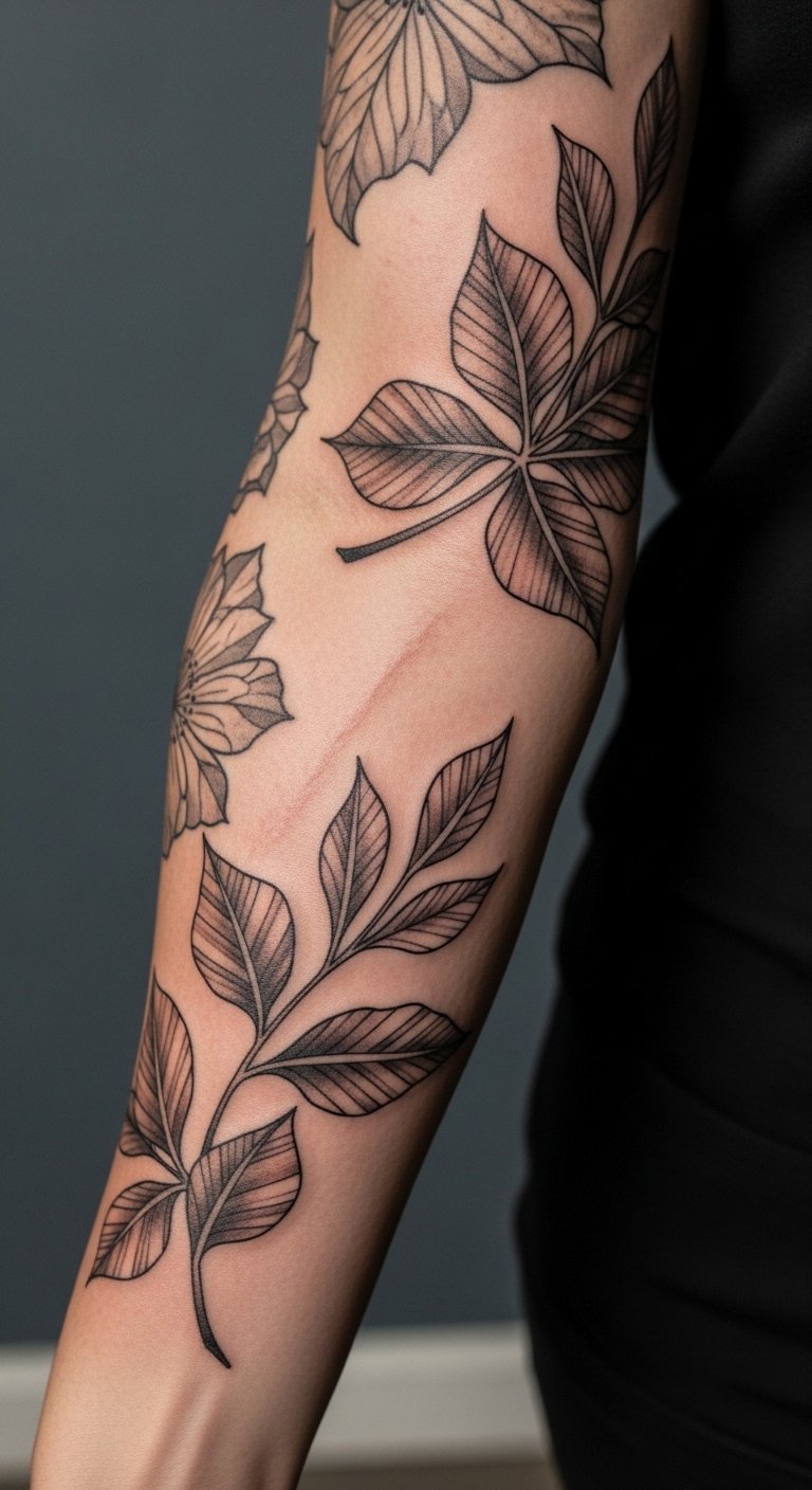 I’ve helped people design sleeves to integrate scars—plants and vines are forgiving because their irregular lines can be tailored to cover texture. Scars require gentle needle work and sometimes different approaches; healing can be unpredictable and slightly more sensitive. Be patient: your artist may stage sessions to allow scar tissue to heal and settle. Mistake: expecting identical results to non-scarred skin—touch-ups might be needed. Work with someone experienced in tattooing scar tissue and ask for healed scar-cover examples.