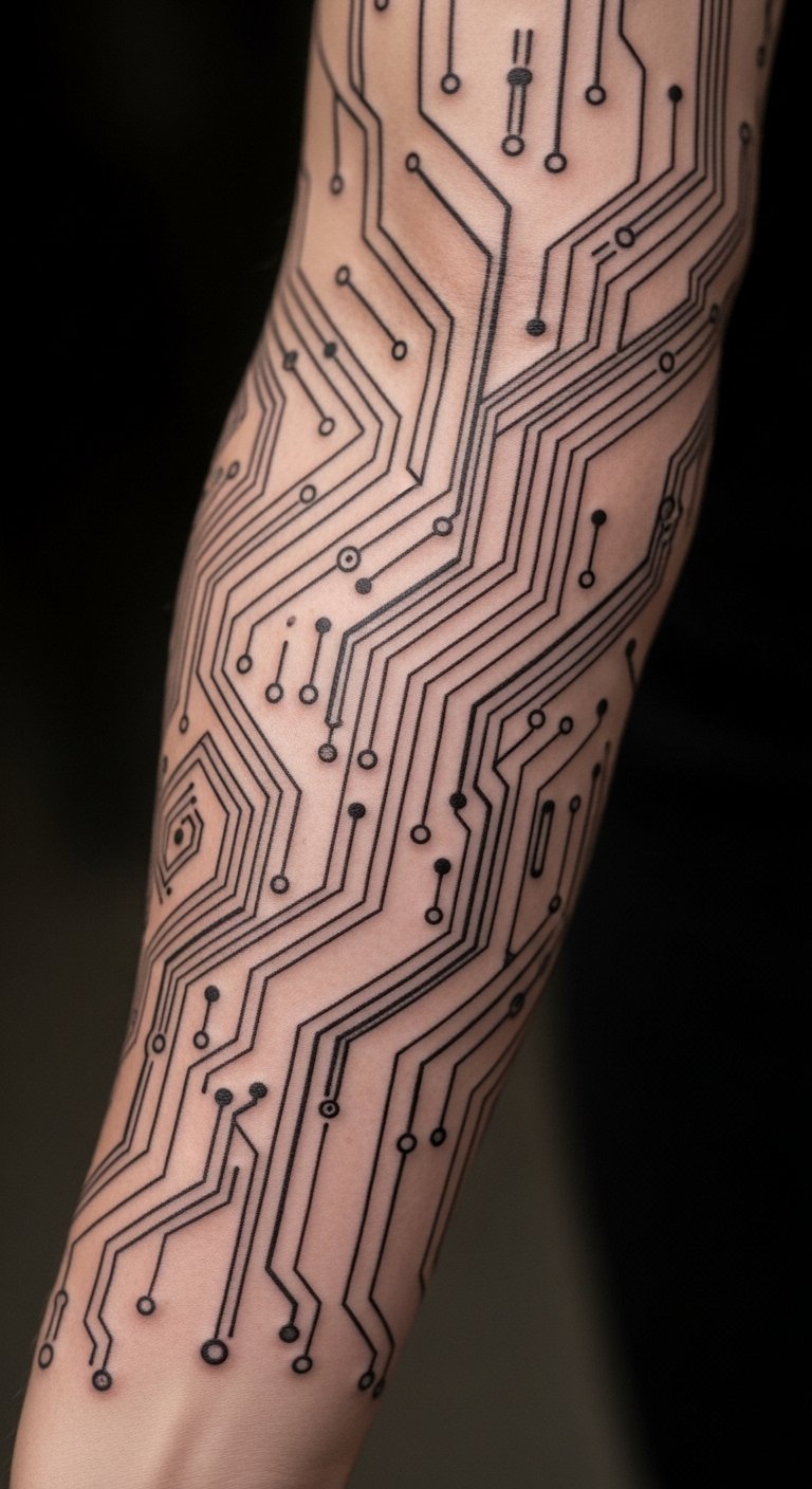 I’ve sketched algorithmic sleeves where motifs are generated and then curated—unique but coherent. This style blends digital aesthetics with organic placement, resulting in a modern gallery-ready sleeve. Pain is moderate depending on how dense the linework is. These designs age well if solid anchors are included; ultra-thin circuitry lines can blur. Common error: overcomplicating patterns so that movement makes them unreadable. Work with an artist who can translate digital files into body-friendly compositions.