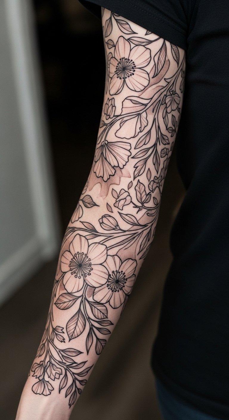 Quick context: I focused on sleeve-ready ideas—full and half sleeves that flow with the arm. Expect styles from fine-line botanical to bold blackwork, Y2K fusion, and narrative Japanese sleeves. These picks reflect current trends and practical longevity—what looks good fresh and stays readable as skin settles.