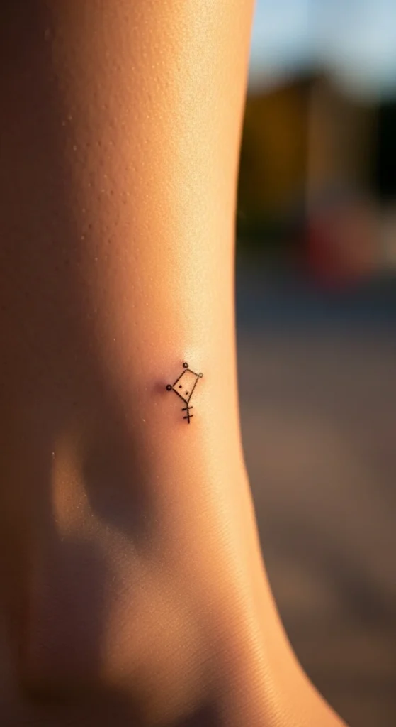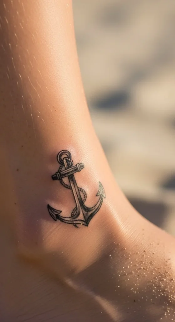 A tiny anchor outline feels grounded and simple. Many people choose it to represent stability or personal balance. Keep it under 1 cm so it stays subtle. You can test the look by sketching an anchor and placing it with tape. This tattoo sits nicely on ankles, wrists, or hip creases. Because it’s a simple outline, it remains budget-friendly. Pair it with a dot or star if you want more meaning.