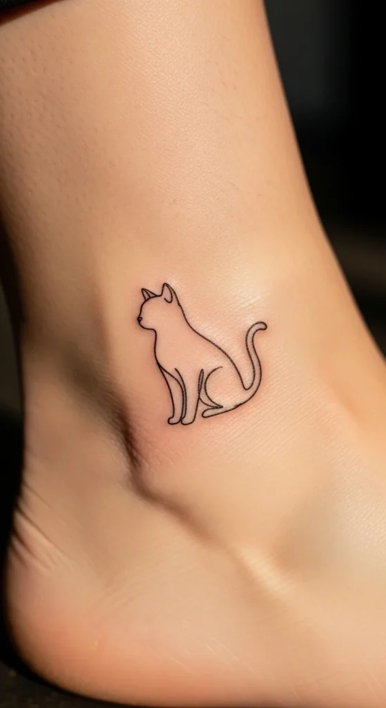 A single-line cat outline feels personal and cute, especially for pet lovers. These designs stay soft and small when kept under an inch. You can test your own pet’s shape by sketching a quick outline and taping it to your ankle. Artists love this style because it’s simple and quick to apply. Keep the lines soft and gentle so the tattoo stays subtle. Many people pair it with a tiny heart or star for extra meaning. It’s budget-friendly and perfect for people who want something sentimental without going large.