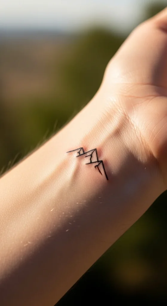 Tiny mountain peaks work well for people who love nature or personal challenges. These designs can be very small—just two or three peaks. You can test it by drawing tiny triangles on your wrist. Keeping the lines thin helps the design stay soft. This style works well on the wrist, ankle, or back of the arm. You can save money by choosing a simple outline instead of shading. It’s a quiet but personal tattoo idea that feels timeless.