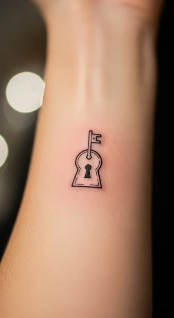 A mini keyhole symbol can feel personal—it hints at privacy, growth, or inner change. You can test this design by printing a tiny keyhole shape and placing it on your skin. Keep the tattoo under 1 cm for a subtle effect. This design pairs well with dots, stars, or tiny letters. It’s quick for artists to apply, so it stays budget-friendly. Many people choose the inner arm or ribcage for a more private placement. It’s soft and symbolic without going big.
