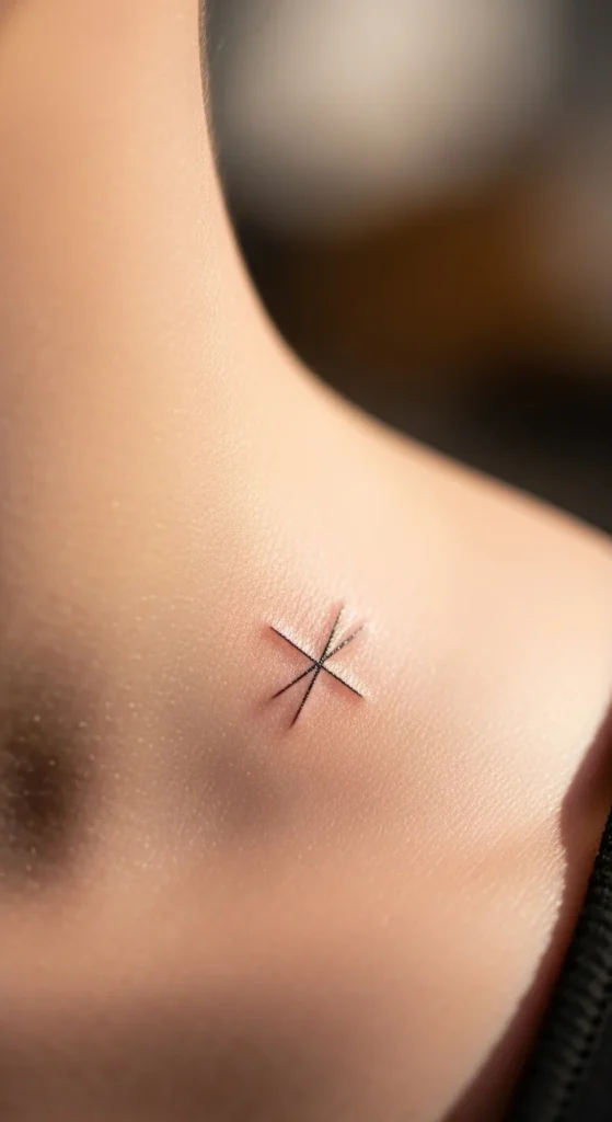 Crossed lines are one of the simplest tattoos available. They can represent choices, transitions, or crossroads. Because they’re so small, they look clean and modern. Try drawing two tiny lines on your collarbone and see how the spacing feels. These tattoos stay budget-friendly because they take seconds to complete. Many people add more small marks over time to create a personal path. It’s a simple, thoughtful idea that never feels too bold.