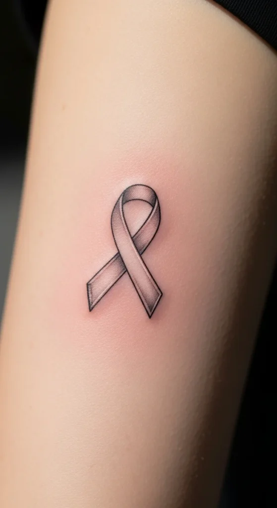 A mini ribbon loop can symbolize awareness, love, or a personal memory. It stays sweet and soft when kept very small. Testing this design is easy—draw a small ribbon loop on your skin and snap a photo. The upper arm or collarbone works well here. Stick to thin lines for the cleanest look. These tattoos are quick and affordable, making them great for beginners looking for something meaningful but subtle.