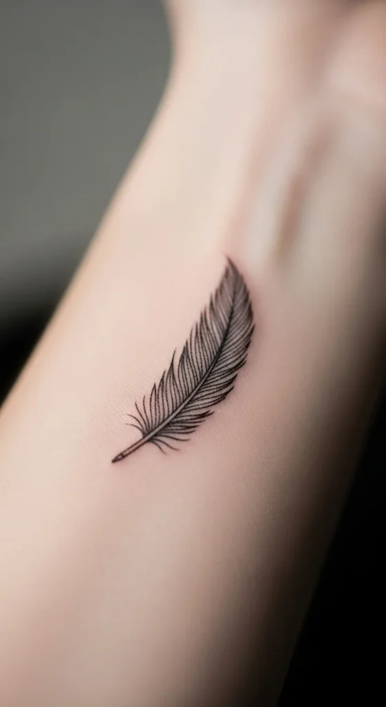 A tiny feather feels light and symbolic. Many people choose it to represent freedom or softness. Keep the feather under 1 inch so it doesn’t lose its gentle look. You can sketch a small feather or use a sticker to test placement. This style pairs well with minimal clusters. It’s affordable and easy for artists to apply. The inner wrist or ribcage works especially well for this design.