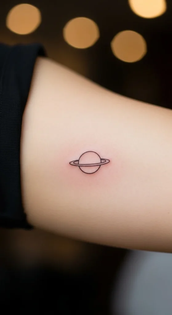 Tiny planet outlines are popular among people who like cosmic themes without going bold. A small ringed planet looks sweet and simple. You can test it by drawing a tiny circle with a ring and placing it on your arm. Keep the lines thin so the design stays clean. This style fits well into the sticker trend and can pair with stars or moons. It’s fast, affordable, and fun to personalize.
