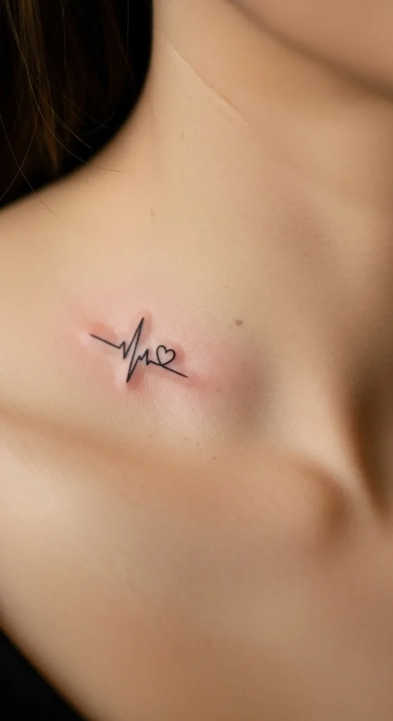 A micro heartbeat line is simple and sweet. Most people choose it to honor someone they care about. Keep the tattoo small so it stays soft and subtle. You can sketch a short heartbeat line and test it on your collarbone. This design works well on the wrist too. Artists say these lines are fast to apply, making them great for people wanting something thoughtful without going big. It fits nicely with small clusters or stands alone.